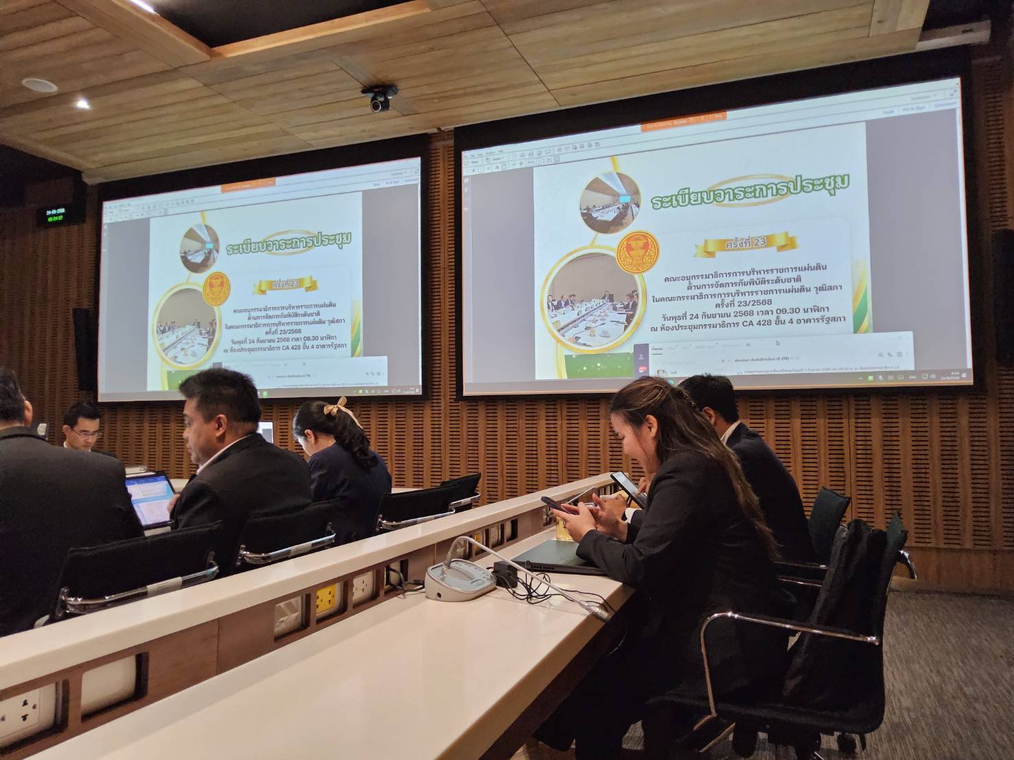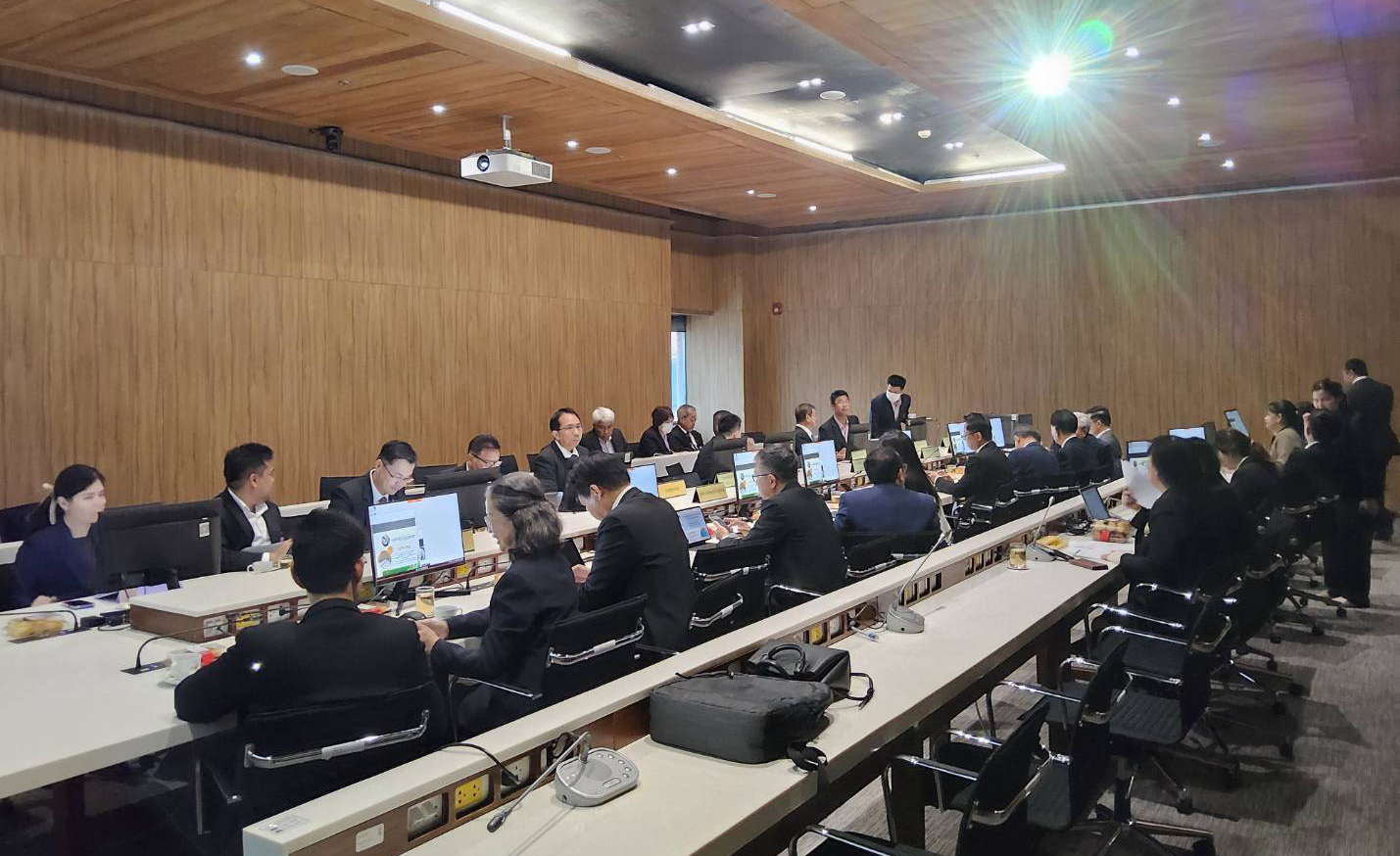 ที่ประชุมหารือเกี่ยวกับแผนป้องกันและแก้ไขปัญหาอุทกภัยในลุ่มน้ำเจ้าพระยาที่ได้รับความเห็นชอบจากคณะกรรมการทรัพยากรน้ำแห่งชาติ แต่ยังพบอุปสรรคในการดำเนินงาน รวมถึงการพิจารณาโครงสร้างและกลไกการบูรณาการด้านการบริหารจัดการน้ำทั้งในช่วงก่อนและระหว่างเกิดพายุหรือฝนตกหนัก โดยเฉพาะในพื้นที่เขื่อนเจ้าพระยา แหล่งกักเก็บน้ำ ลำน้ำสายหลัก และพื้นที่ลุ่มต่ำ นอกจากนี้ ที่ประชุมยังได้แลกเปลี่ยนข้อมูลเกี่ยวกับปัญหาและอุปสรรคด้านการบริหารจัดการน้ำ แผนการสื่อสารเพื่อประชาสัมพันธ์ให้หน่วยงานที่เกี่ยวข้องและประชาชนรับทราบสถานการณ์ ตลอดจนกฎหมายและระเบียบที่เกี่ยวข้อง เช่น มาตรการชดเชยความเสียหายจากภัยธรรมชาติ และการบริหารจัดการน้ำตามแผนที่ภาครัฐกำหนด