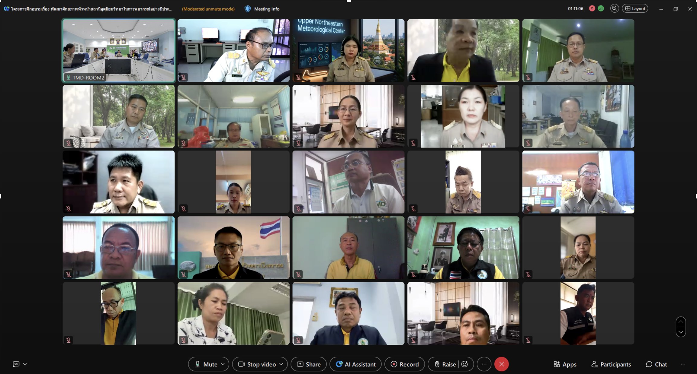 เมื่อวันที่ 29 กันยายน 2568 เวลา 14.30 น. ดร.สุกันยาณี ยะวิญชาญ อธิบดีกรมอุตุนิยมวิทยา เป็นประธานในพิธีปิดโครงการ “พัฒนาศักยภาพหัวหน้าสถานีอุตุนิยมวิทยาในการพยากรณ์อย่างมีประสิทธิภาพ” โดยมีนายนัฐวุฒิ แดนดี รองอธิบดีฝ่ายวิชาการ นายสราวุธ สมทรัพย์ รองอธิบดีฝ่ายบริหาร ข้าราชการกรมอุตุนิยมวิทยาเข้าร่วมพิธี ณ ห้องไพลิน ชั้น 3 อาคาร 50 ปี อุตุนิยมวิทยา และหัวหน้าสถานีอุตุนิยมวิทยาทั่วประเทศเข้าร่วมกิจกรรมผ่านระบบประชุมออนไลน์