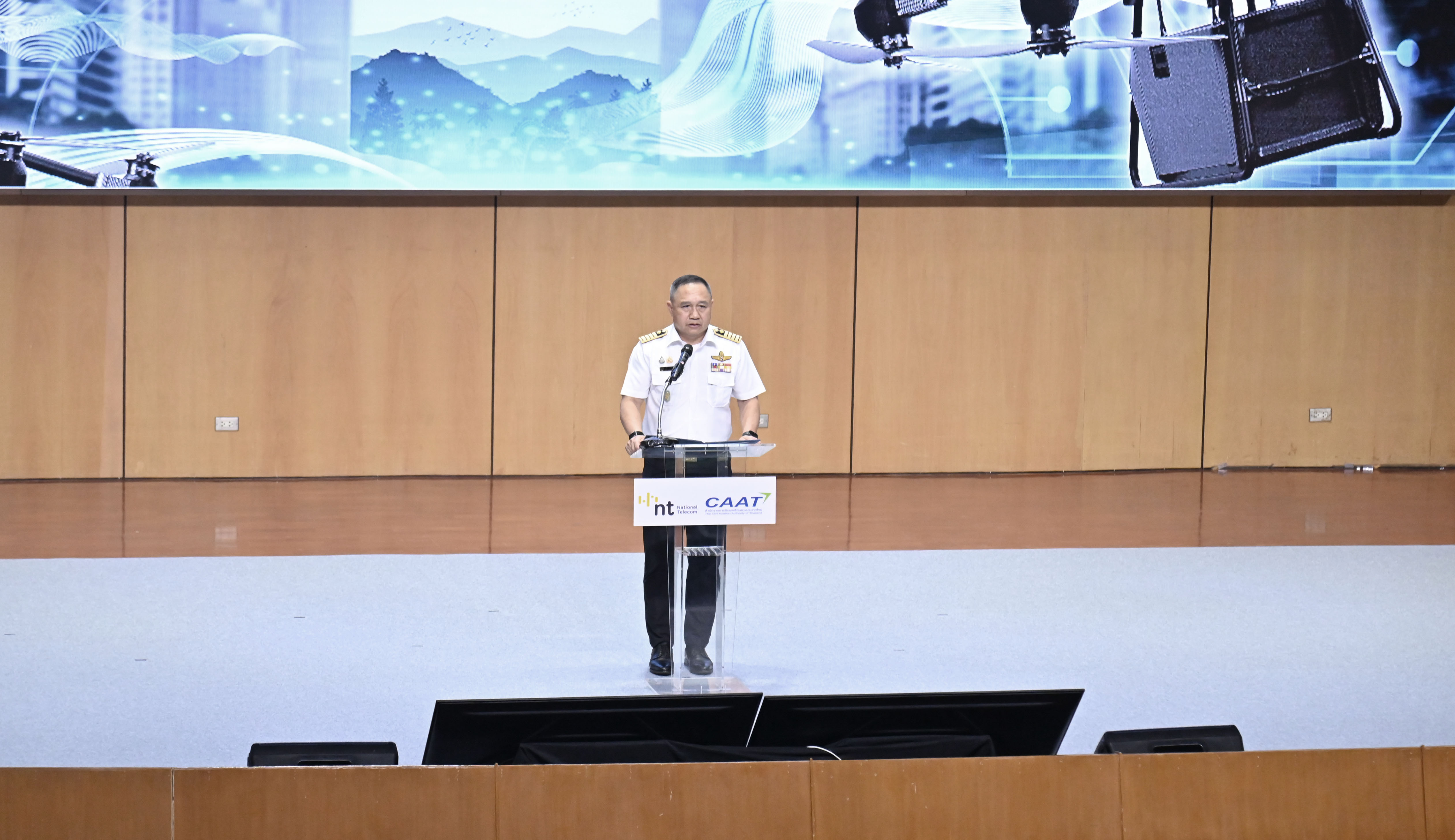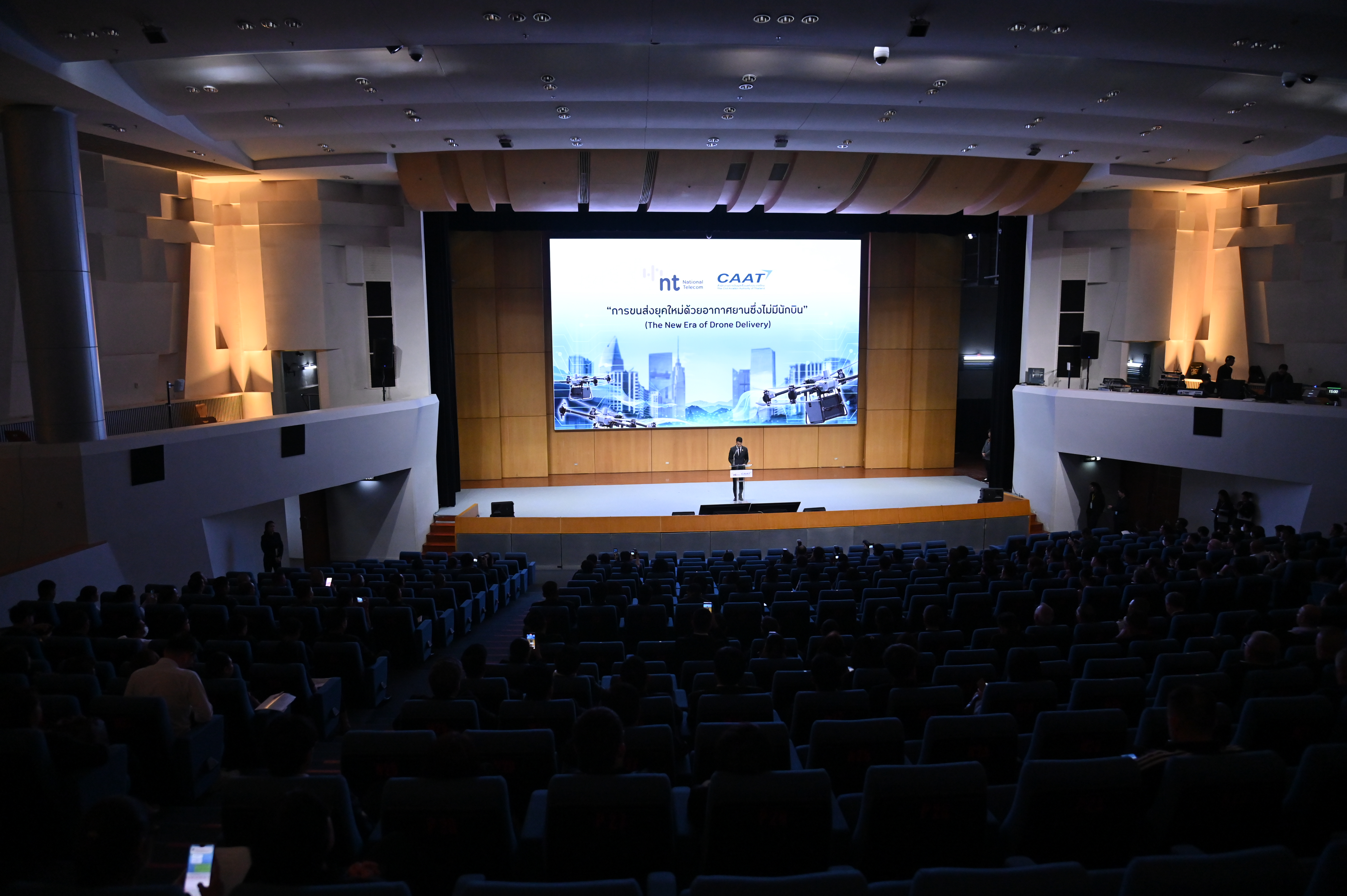 สำหรับงานแถลงข่าวดังกล่าว จัดขึ้น โดย NT กระทรวงดีอี ร่วมกับ สำนักงานการบินพลเรือนแห่งประเทศไทย (CAAT) กระทรวงคมนาคม เพื่อส่งเสริมนวัตกรรมการนำโดรนมาใช้ในการขนส่งทางอากาศยุคใหม่ในภาคธุรกิจและกิจการต่าง ๆ พร้อมสาธิตรูปแบบการขนส่งและแพลตฟอร์มดิจิทัล สำหรับบริหารจัดการจราจรทางอากาศแบบครบวงจร