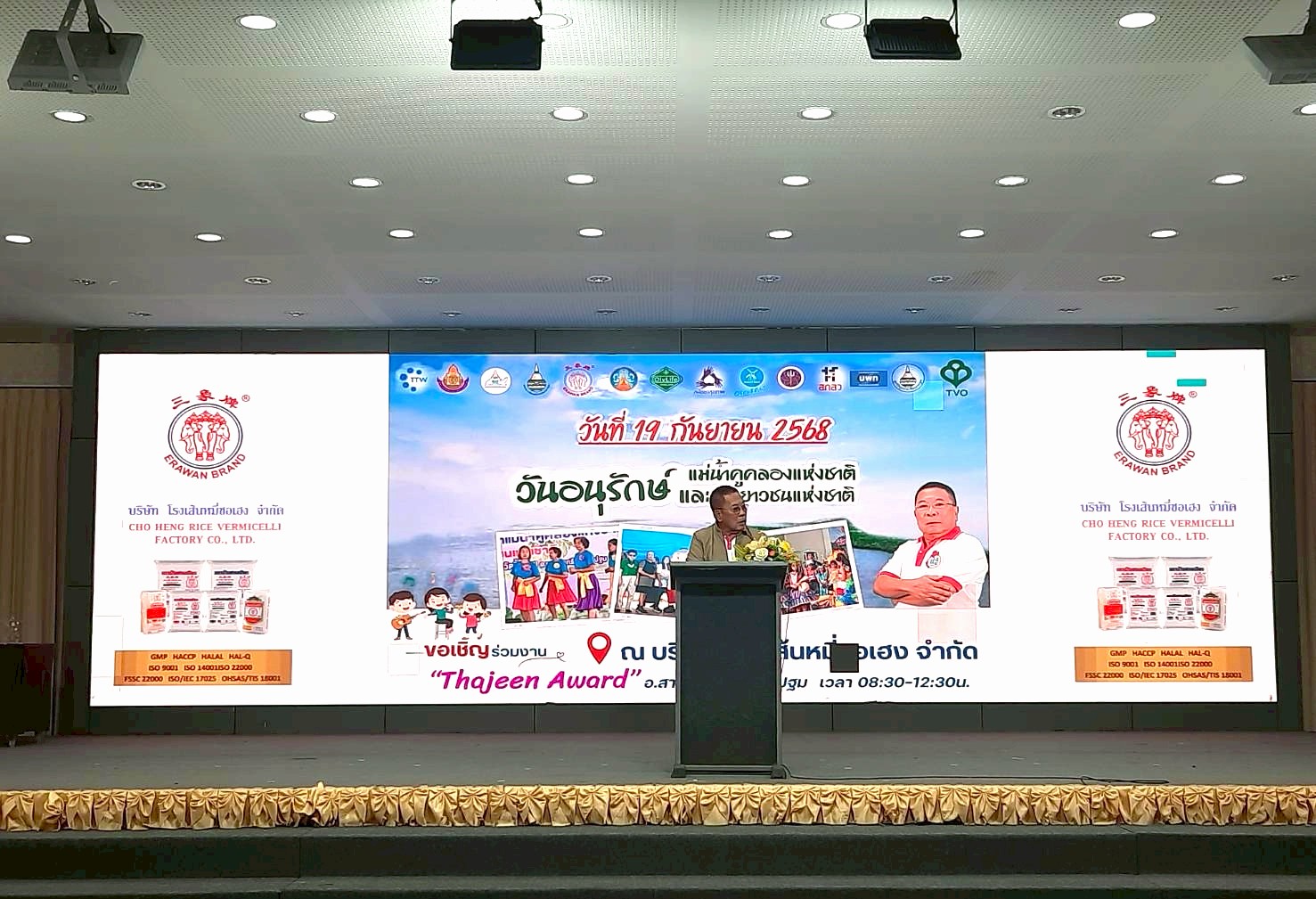 วันศุกร์ที่ 19 กันยายน 2568 เวลา 08.30 น.นายณัฏฐ์ฤพงศ์ ภูบัวเพชร ผู้อำนวยการสถานีอุตุนิยมวิทยานครปฐมเข้าร่วมงานวันอนุรักษ์และพัฒนาแม่น้ำคูคลองแห่งชาติ และวันเยาวชนแห่งชาติ ประจำปี 2568 จัดโดยมูลนิธิลุ่มแม่น้ำท่าจีน โดยมีนายอนุชา สะสมทรัพย์ รัฐมนตรีช่วยว่าการกระทรวงสาธารณสุข เป็นประธาน และมีนายยงยุทธ สวนทอง รองผู้ว่าราชการจังหวัดนครปฐม พร้อมด้วยว่าที่ร้อยโท อรรถชล ทรัพย์ทวี นายอำเภอสามพราน นายอารุช เอมโอฐ นายอำเภอนครชัยศรี ในการนี้ทีมวิจัยจากมูลนิธิลุ่มแม่น้ำท่าจีน นำโดยอาจารย์ประเชิญ คนเทศ หัวหน้าโครงการฯ ผศ.ดร.ปริเวท วรรณโกวิท จากคณะวิทยาศาสตร์ มหาวิทยาลัยเทคโนโลยีพระจอมเกล้าธนบุรี ผศ.ดร.พัชรา จตุรโกมล จากคณะศิลปศาสตร์และวิทยาศาสตร์ มหาวิทยาลัยเกษตรศาสตร์ วิทยาเขตกำแพงแสน ได้นำเสนอสรุปผลการวิจัยจากเวทีการอบรมทั้ง 4 ครั้ง นับเป็นสะท้อนผลการเรียนรู้ร่วมกัน และวางแนวทางไปสู่การจัดทำแผนพัฒนาทรัพยากรน้ำเพื่อลดภัยพิบัติอย่างเป็นรูปธรรมในระดับพื้นที่อย่างเป็นระบบและยั่งยืนต่อไป นอกจากนี้ผู้ร่วมงานประกอบด้วยองค์การบริหารส่วนตำบลในพื้นที่ หน่วยงานภาครัฐภาคีเครือข่าย นักเรียนจากโรงเรียนในพื้นที่ 15 แห่ง คณะวิจัยจากมูลนิธิลุ่มแม่น้ำท่าจีน รวมประมาณ 500 คน งานจัดขึ้น ณ ห้องประชุมบริษัทเส้นหมี่ชอเฮง จำกัด อำเภอสามพราน จังหวัดนครปฐม