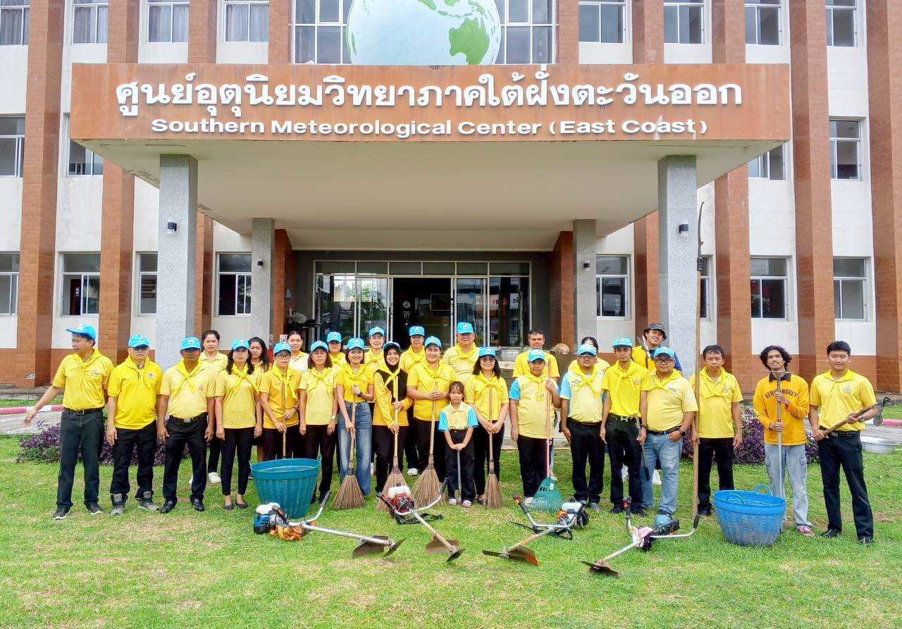 วันศุกร์ที่ 10 ตุลาคม 2568 เวลา 09.00 น. ศูนย์อุตุนิยมวิทยาภาคใต้ฝั่งตะวันออก จัดกิจกรรมจิตอาสา เนื่องในวันนวมินทรมหาราช วันคล้ายวันสวรรคต พระบาทสมเด็จพระบรมชนกาธิเบศร มหาภูมิพลอดุลยเดชมหาราช บรมนาถบพิตร 13 ตุลาคม 2568 เพื่อน้อมรำลึกในพระมหากรุณาธิคุณ และแสดงออกถึงความจงรักภักดี โดยจัดกิจกรรมพัฒนาและปรับภูมิทัศน์โดยรอบบริเวณอาคารศูนย์อุตุนิยมวิทยาภาคใต้ฝั่งตะวันออก และบริเวณข้างเคียงให้มีความสะอาด ร่มรื่น สวยงาม เสริมสร้างวินัยให้กับบุคคลกรในการร่วมมือกันสร้างสภาพแวดล้อมให้เหมาะกับการปฏิบัติงาน และสร้างจิตสำนึกการมีส่วนร่วมในการดำเนินกิจกรรมจิตอาสาของบุคลากรในหน่วยงาน สร้างความรักความสามัคคี เกิดความร่วมมือร่วมใจในการทำงานและบำเพ็ญสาธารณประโยชน์ต่อสังคมและส่วนรวม