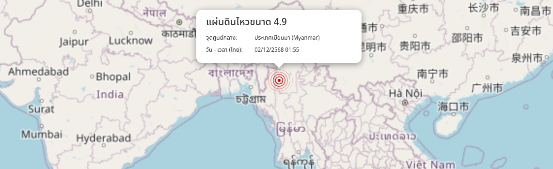 แผ่นดินไหว ประเทศเมียนมา (Myanmar) ขนาด 4.9