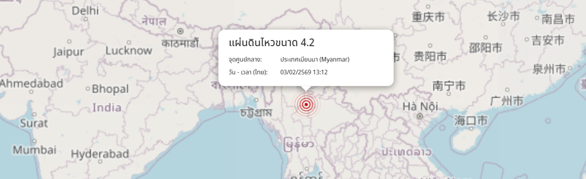 แผ่นดินไหว ประเทศเมียนมา (Myanmar) ขนาด 4.2