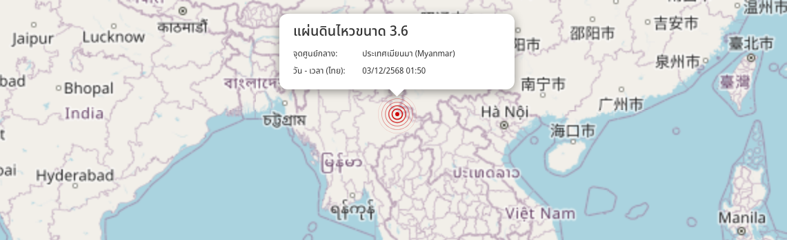 แผ่นดินไหว ประเทศเมียนมา (Myanmar) ขนาด 3.6
