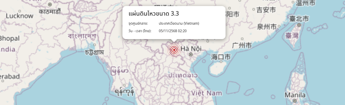 แผ่นดินไหว ประเทศเวียดนาม (Vietnam) ขนาด 3.3