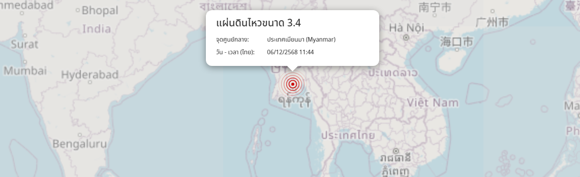 แผ่นดินไหว ประเทศเมียนมา (Myanmar) ขนาด 3.4