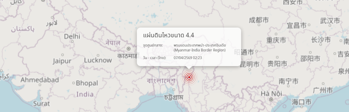 แผ่นดินไหว พรมแดนประเทศพม่า-ประเทศอินเดีย (Myanmar-India Border Region) ขนาด 4.4