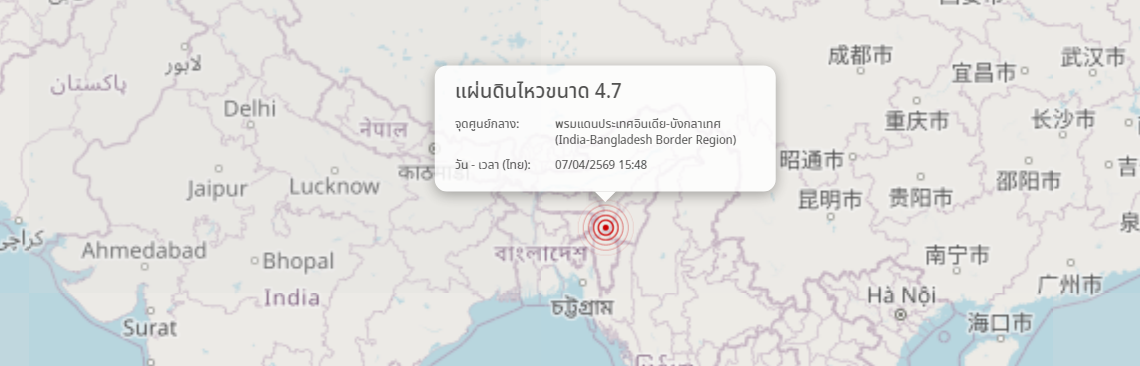 แผ่นดินไหว พรมแดนประเทศอินเดีย-บังกลาเทศ (India-Bangladesh Border Region) ขนาด 4.7