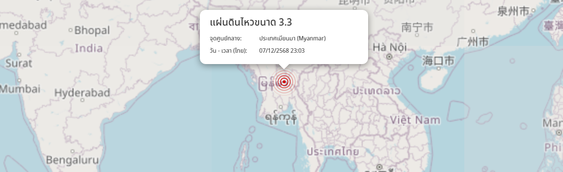 แผ่นดินไหว ประเทศเมียนมา (Myanmar) ขนาด 3.3