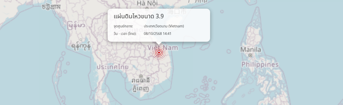 แผ่นดินไหว ประเทศเวียดนาม (Vietnam) ขนาด 3.9
