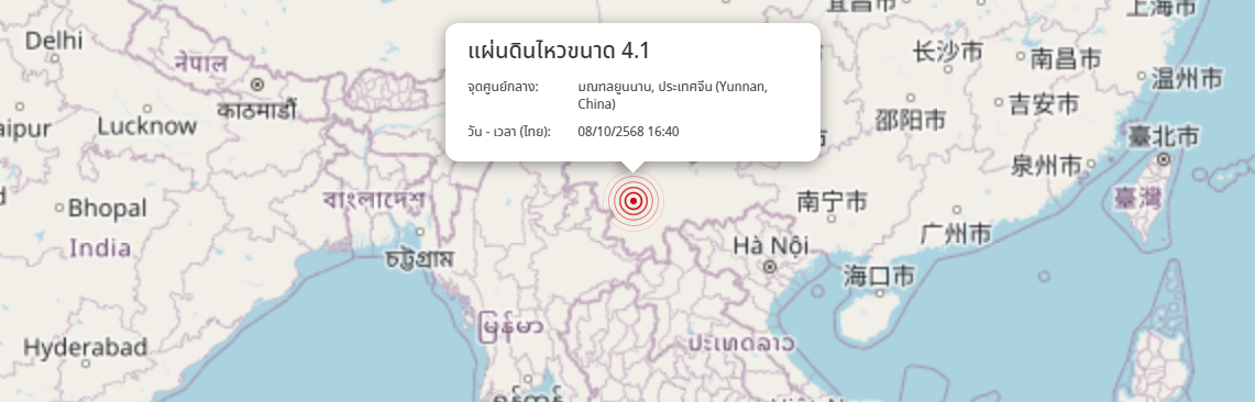 แผ่นดินไหว มณฑลยูนนาน, ประเทศจีน (Yunnan, China) ขนาด 4.1