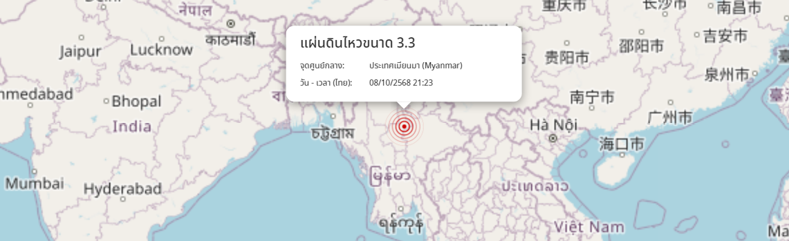 แผ่นดินไหว ประเทศเมียนมา (Myanmar) ขนาด 3.3