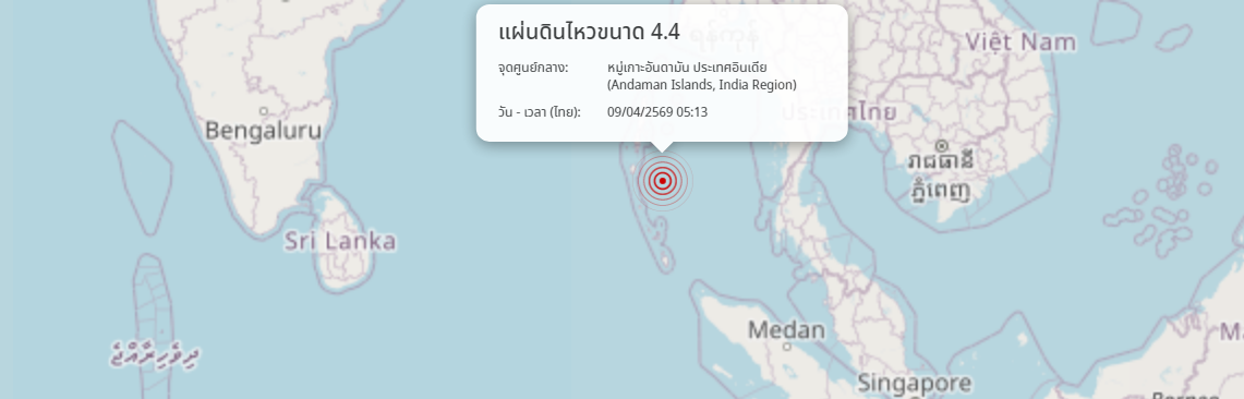 แผ่นดินไหว หมู่เกาะอันดามัน ประเทศอินเดีย (Andaman Islands, India Region) ขนาด 4.4