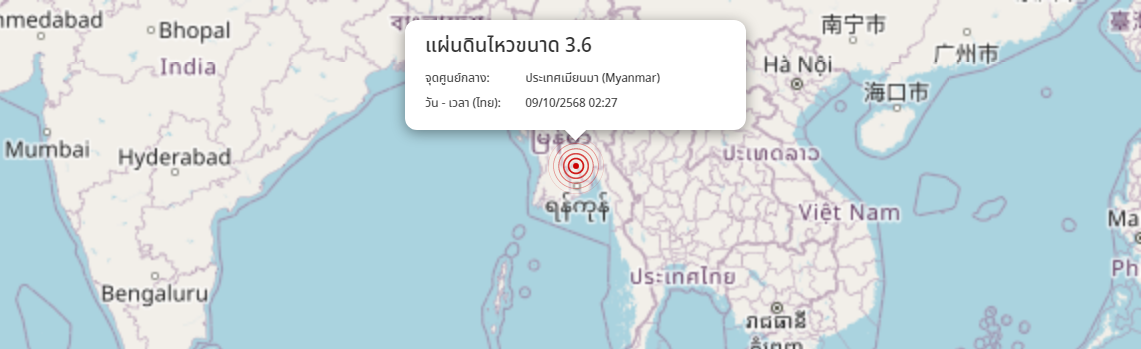 แผ่นดินไหว ประเทศเมียนมา (Myanmar) ขนาด 3.6