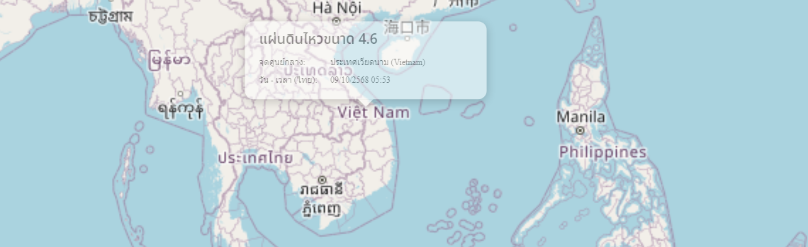 แผ่นดินไหว ประเทศเวียดนาม (Vietnam) ขนาด 4.6