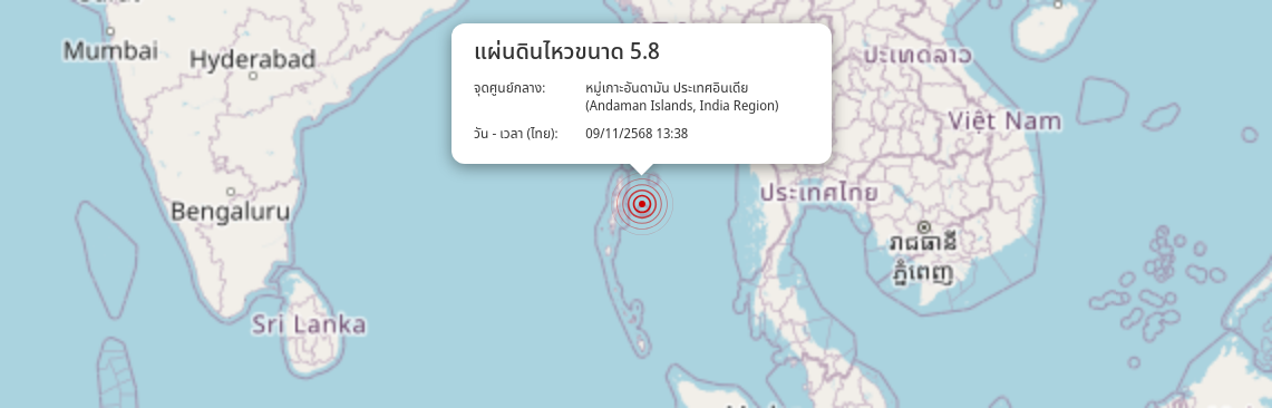 แผ่นดินไหว หมู่เกาะอันดามัน ประเทศอินเดีย (Andaman Islands, India Region) ขนาด 5.8