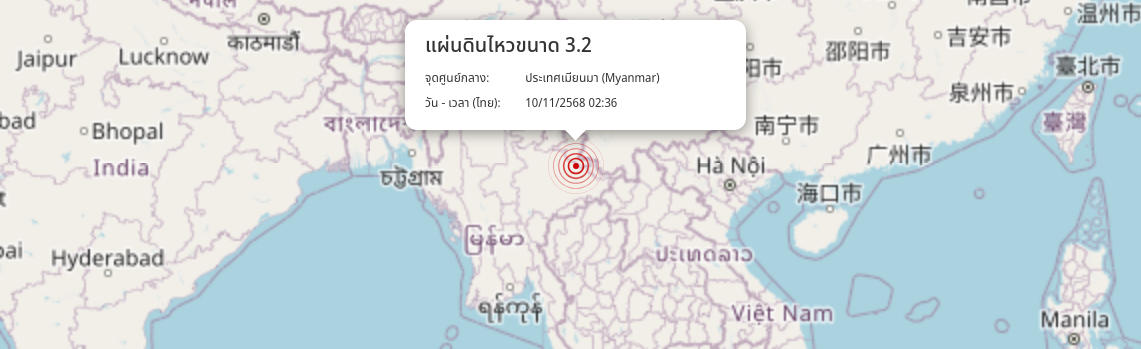 แผ่นดินไหว ประเทศเมียนมา (Myanmar) ขนาด 3.2