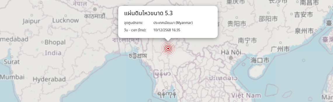แผ่นดินไหว ประเทศเมียนมา (Myanmar) ขนาด 5.3