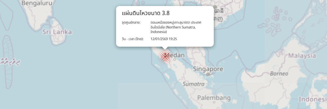 แผ่นดินไหว ตอนเหนือของหมู่เกาะสุมาตรา ประเทศอินโดนีเซีย (Northern Sumatra, Indonesia) ขนาด 3.8