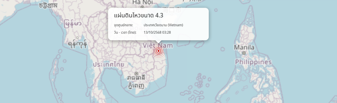 แผ่นดินไหว ประเทศเวียดนาม (Vietnam) ขนาด 4.3