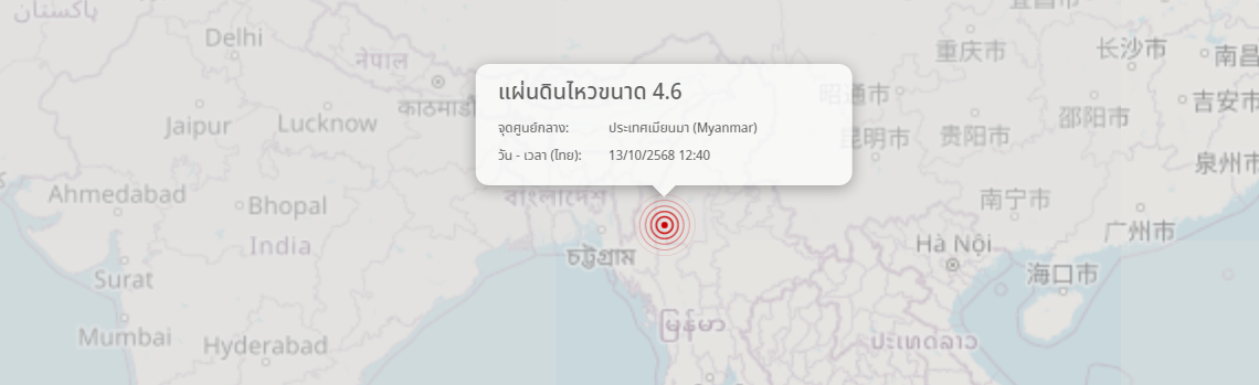 แผ่นดินไหว ประเทศเมียนมา (Myanmar) ขนาด 4.6