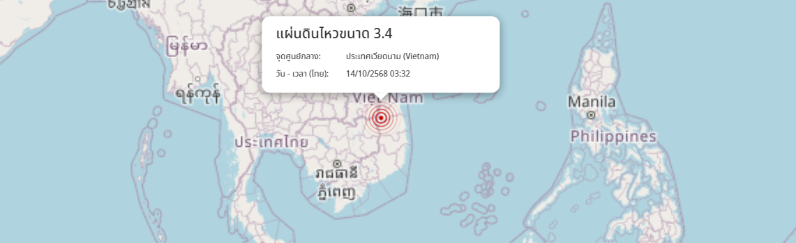 แผ่นดินไหว ประเทศเวียดนาม (Vietnam) ขนาด 3.4