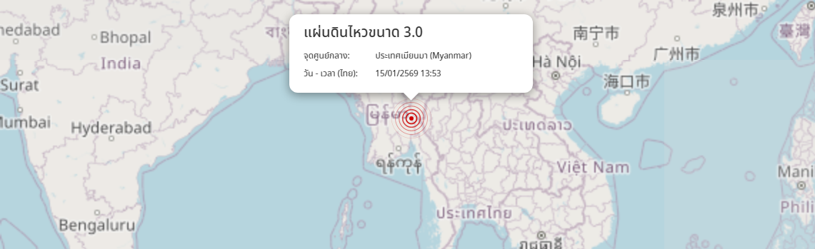 แผ่นดินไหว ประเทศเมียนมา (Myanmar) ขนาด 3.0