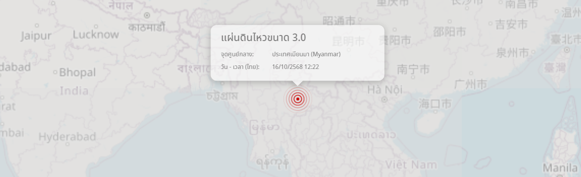 แผ่นดินไหว ประเทศเมียนมา (Myanmar) ขนาด 3.0