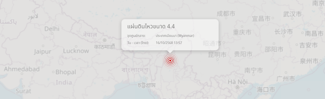 แผ่นดินไหว ประเทศเมียนมา (Myanmar) ขนาด 4.4