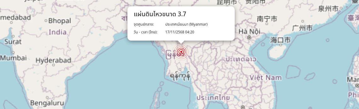 แผ่นดินไหว ประเทศเมียนมา (Myanmar) ขนาด 3.7