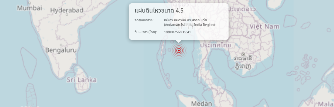 แผ่นดินไหว หมู่เกาะอันดามัน ประเทศอินเดีย (Andaman Islands, India Region) ขนาด 4.5