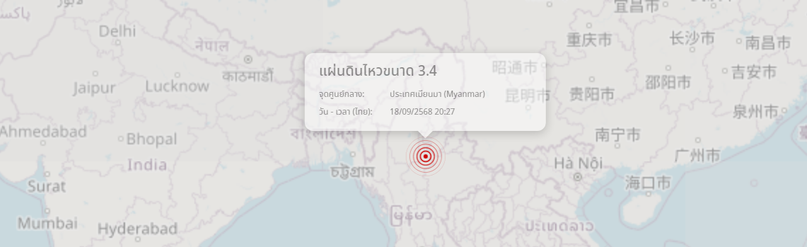 แผ่นดินไหว ประเทศเมียนมา (Myanmar) ขนาด 3.4