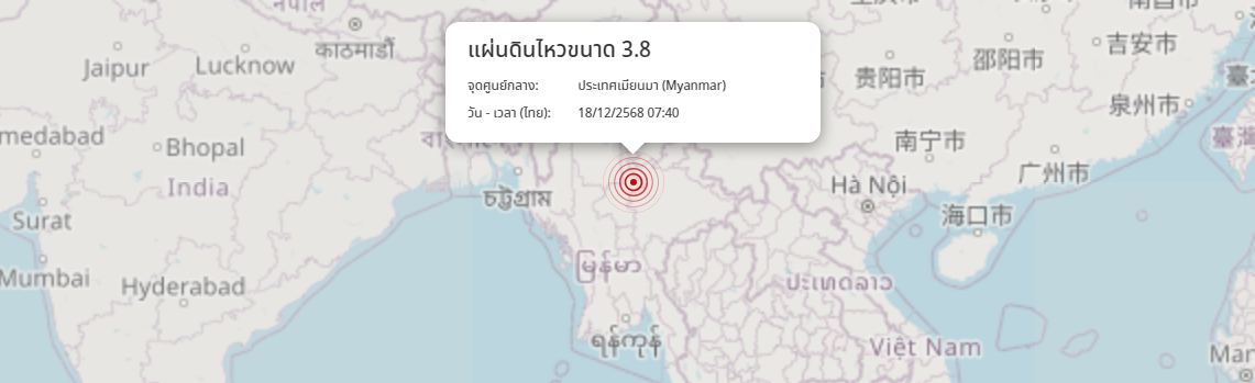 แผ่นดินไหว ประเทศเมียนมา (Myanmar) ขนาด 3.8