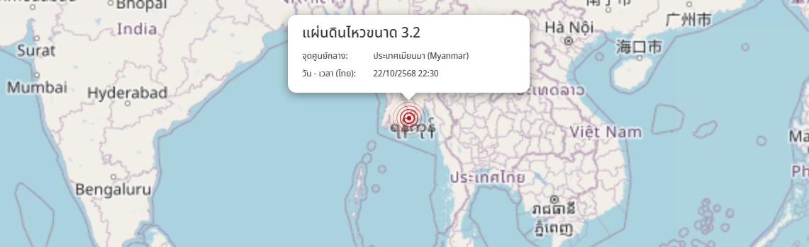 แผ่นดินไหว ประเทศเมียนมา (Myanmar) ขนาด 3.2