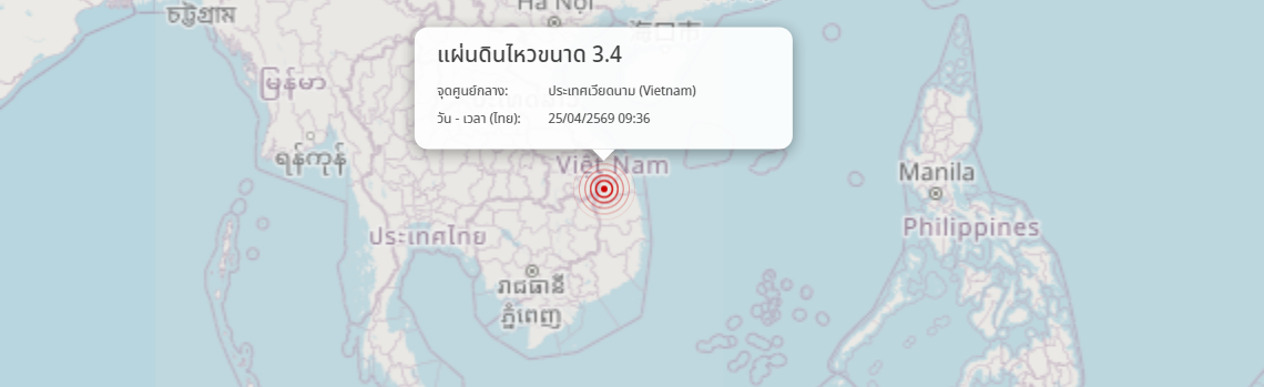 แผ่นดินไหว ประเทศเวียดนาม (Vietnam) ขนาด 3.4