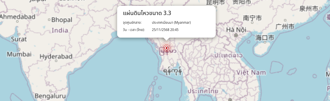 แผ่นดินไหว ประเทศเมียนมา (Myanmar) ขนาด 3.3