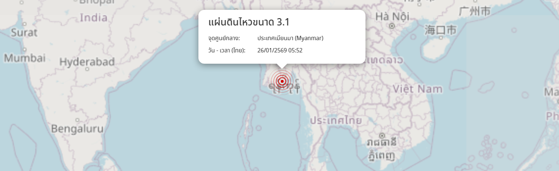 แผ่นดินไหว ประเทศเมียนมา (Myanmar) ขนาด 3.1