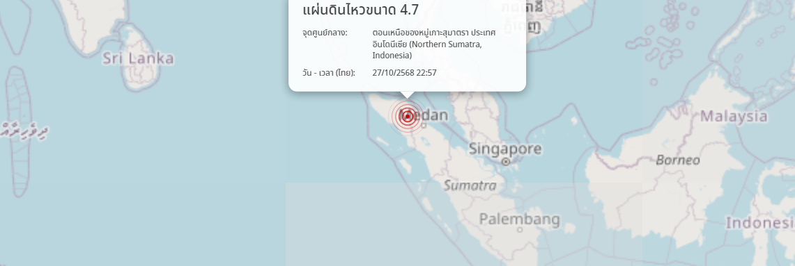 แผ่นดินไหว ตอนเหนือของหมู่เกาะสุมาตรา ประเทศอินโดนีเซีย (Northern Sumatra, Indonesia) ขนาด 4.7