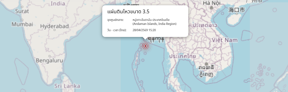 แผ่นดินไหว หมู่เกาะอันดามัน ประเทศอินเดีย (Andaman Islands, India Region) ขนาด 3.5