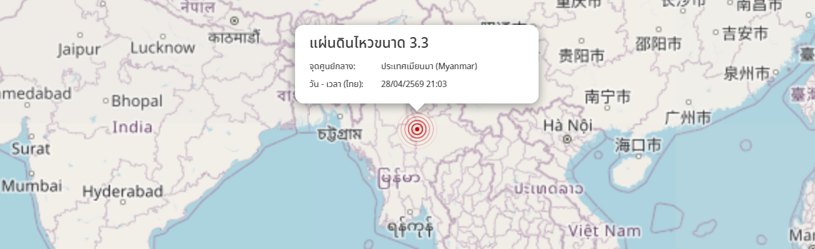 แผ่นดินไหว ประเทศเมียนมา (Myanmar) ขนาด 3.3
