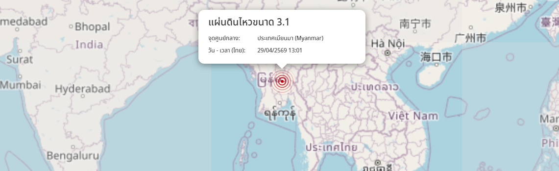 แผ่นดินไหว ประเทศเมียนมา (Myanmar) ขนาด 3.1