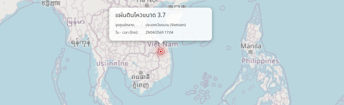 แผ่นดินไหว ประเทศเวียดนาม (Vietnam) ขนาด 3.7