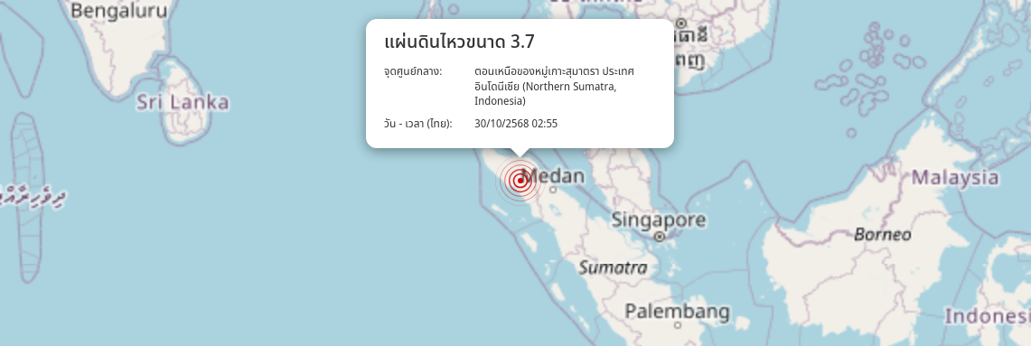 แผ่นดินไหว ตอนเหนือของหมู่เกาะสุมาตรา ประเทศอินโดนีเซีย (Northern Sumatra, Indonesia) ขนาด 3.7