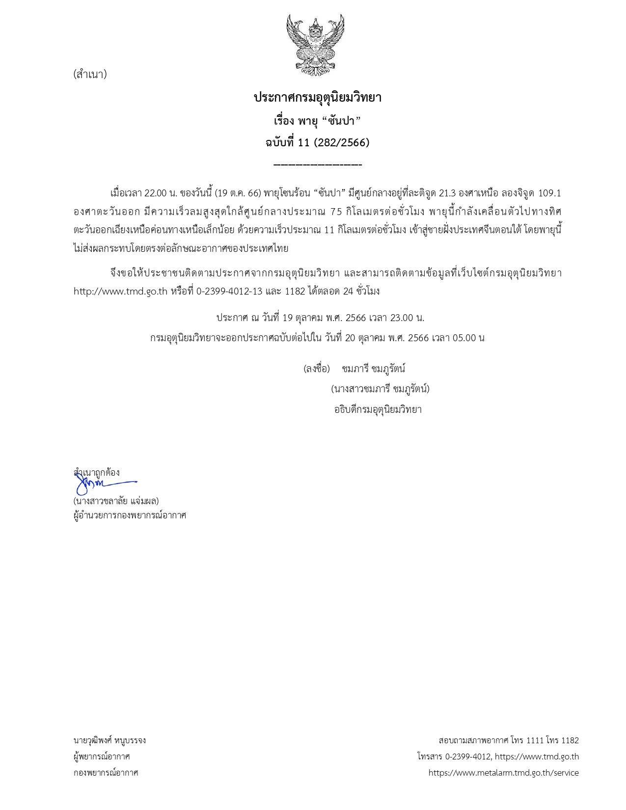 พายุ “ซันปา” ฉบับที่ 11 (282/2566)