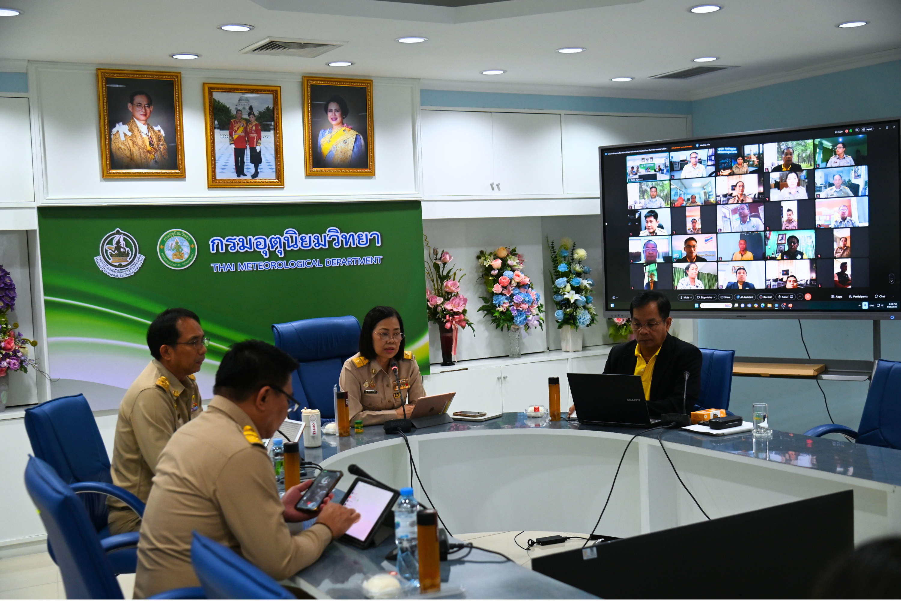 เมื่อวันที่ 29 กันยายน 2568 เวลา 14.30 น. ดร.สุกันยาณี ยะวิญชาญ อธิบดีกรมอุตุนิยมวิทยา เป็นประธานในพิธีปิดโครงการ “พัฒนาศักยภาพหัวหน้าสถานีอุตุนิยมวิทยาในการพยากรณ์อย่างมีประสิทธิภาพ” โดยมีนายนัฐวุฒิ แดนดี รองอธิบดีฝ่ายวิชาการ นายสราวุธ สมทรัพย์ รองอธิบดีฝ่ายบริหาร ข้าราชการกรมอุตุนิยมวิทยาเข้าร่วมพิธี ณ ห้องไพลิน ชั้น 3 อาคาร 50 ปี อุตุนิยมวิทยา และหัวหน้าสถานีอุตุนิยมวิทยาทั่วประเทศเข้าร่วมกิจกรรมผ่านระบบประชุมออนไลน์