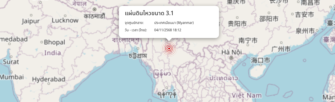 แผ่นดินไหว ประเทศเมียนมา (Myanmar) ขนาด 3.1
