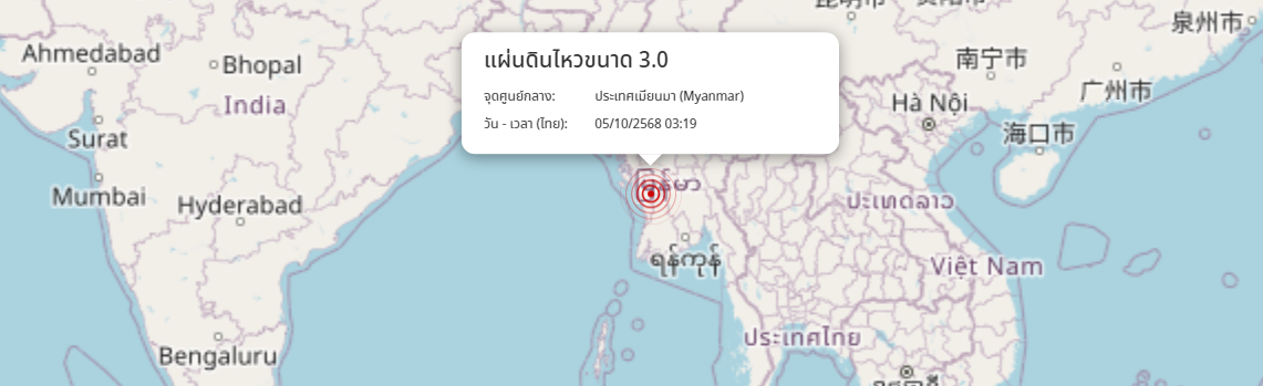 แผ่นดินไหว ประเทศเมียนมา (Myanmar) ขนาด 3.0
