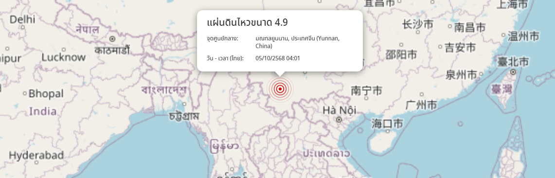 แผ่นดินไหว มณฑลยูนนาน, ประเทศจีน (Yunnan, China) ขนาด 4.9