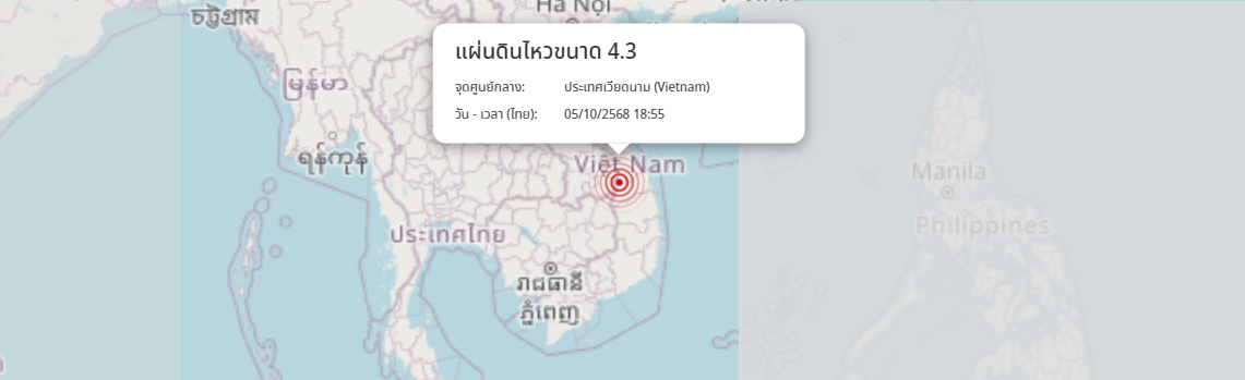 แผ่นดินไหว ประเทศเวียดนาม (Vietnam) ขนาด 4.3