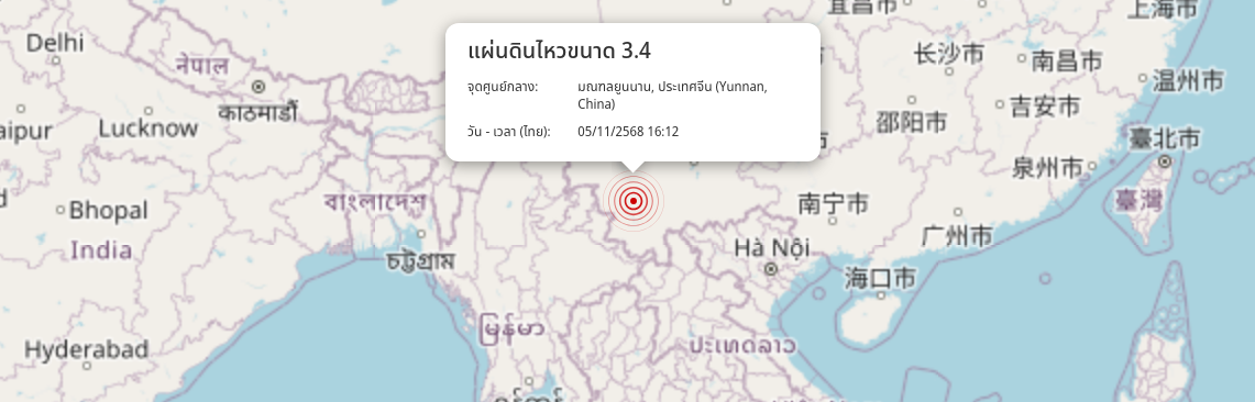 แผ่นดินไหว มณฑลยูนนาน, ประเทศจีน (Yunnan, China) ขนาด 3.4